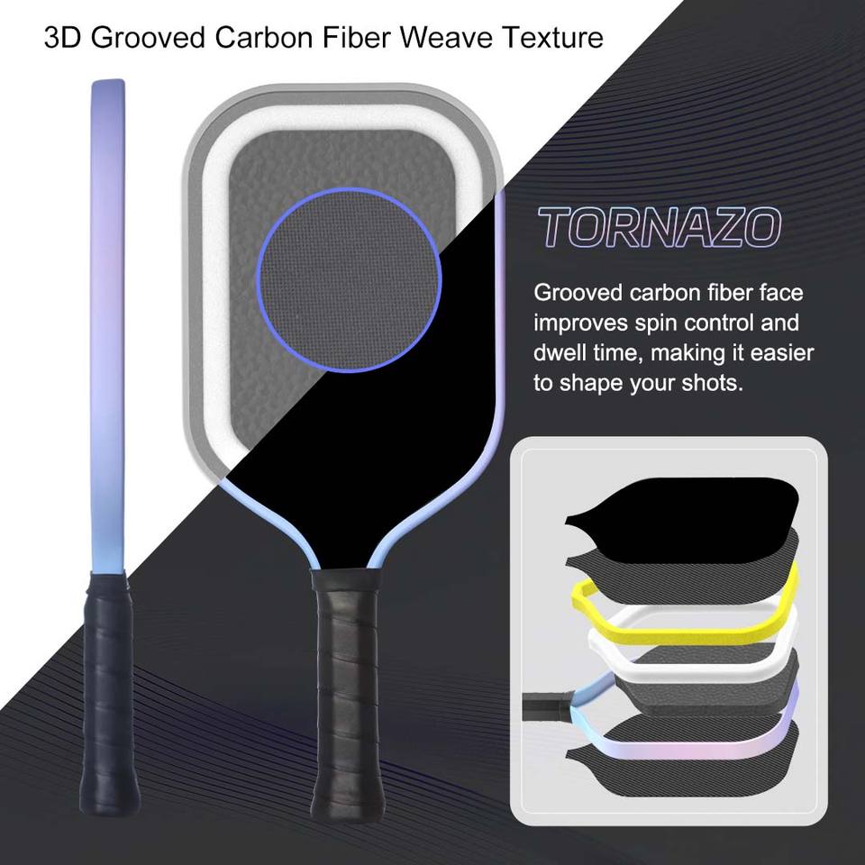Raquette de pickleball personnalisée en usine, forme standard, puissante, excellent contrôle, en fibre de carbone, amortie, pour le divertissement