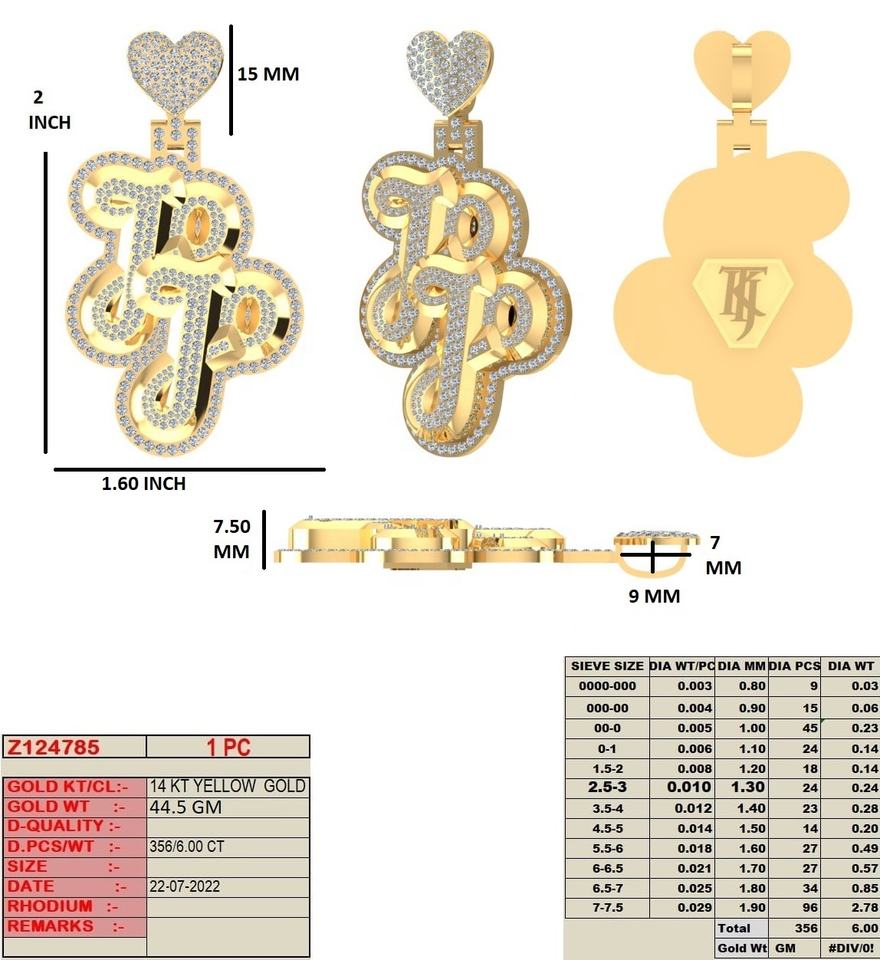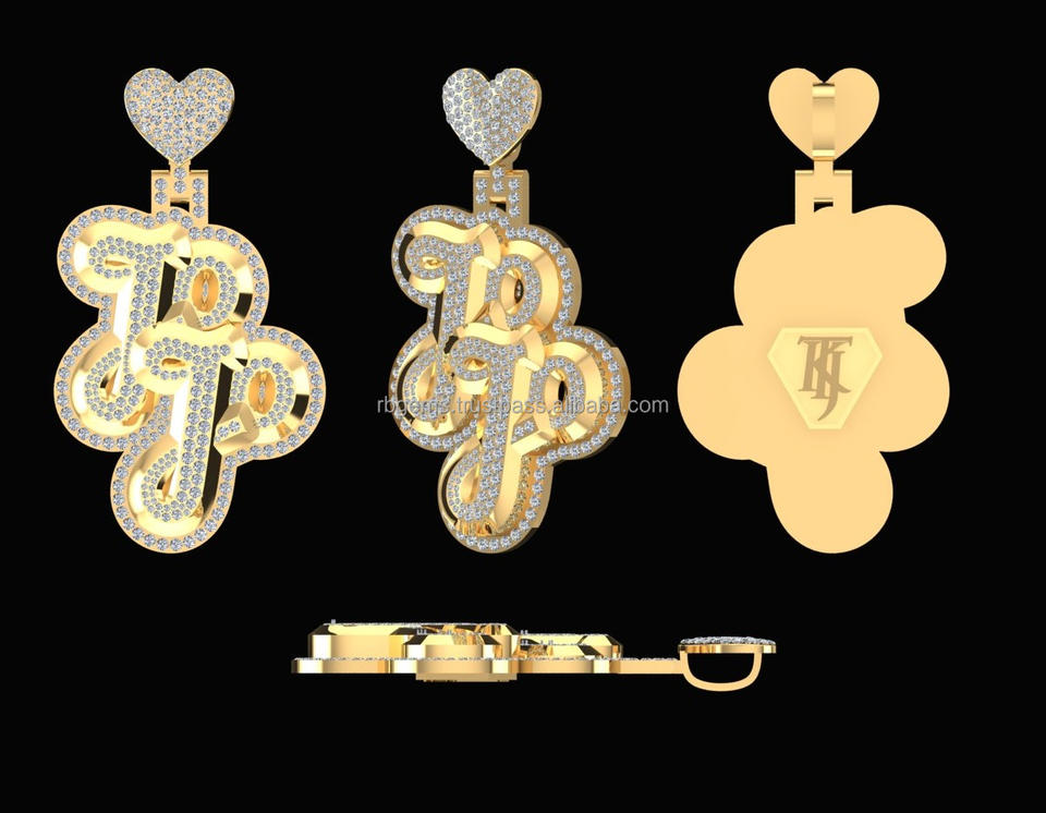 Pendentif en or jaune plaqué rhodium personnalisé en usine, serti de diamants glacés, certifié IGI, diamant VVS, chaîne cubaine, nom personnalisé 3D, hip hop