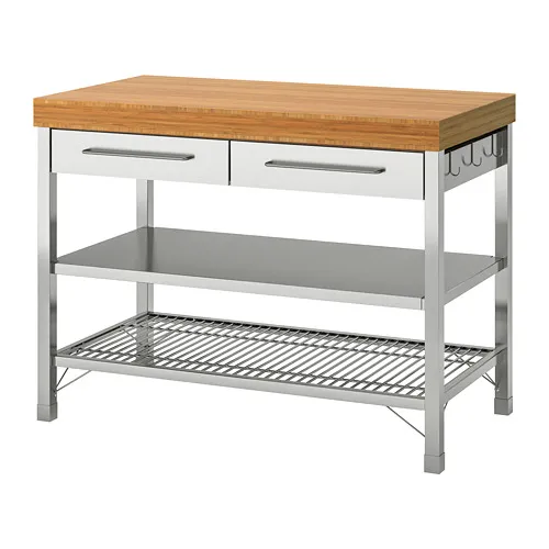 Plan de travail en acier inoxydable sur mesure avec plateau en bambou, équipement de rangement pour cuisine et cuisinière