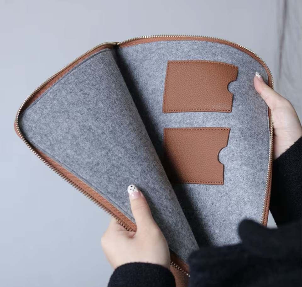 Sac mince personnalisable de poche de téléphone portable d'ordinateur de livraison d'usine avec la douille de cuir d'unité centrale de feutre de porte-stylo de carte pour le macbook pro