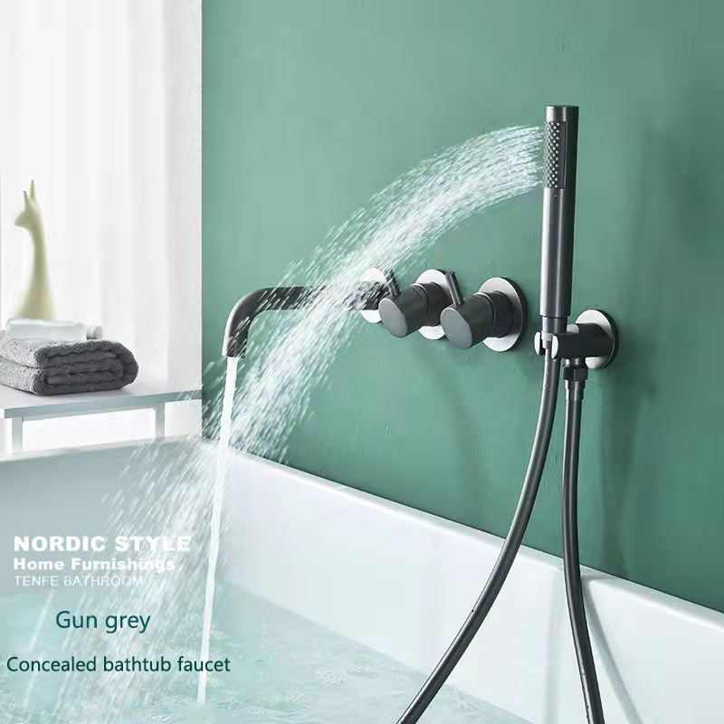 Mélangeur d'eau de baignoire cascade noir mat design d'usine robinet de baignoire mural dissimulé avec douchette