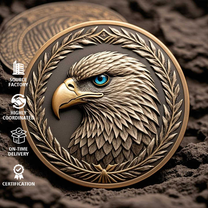 Pièce commémorative en métal de conception industrielle, logo personnalisé, moulage, placage en cuivre antique 3D, pièce commémorative d'aigle, collection