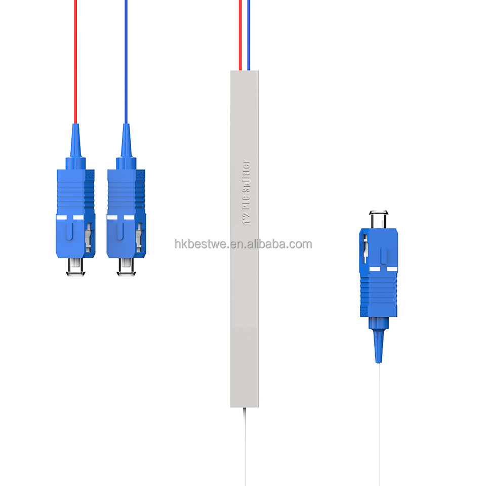 Usine directe 0.9mm Mini fibre optique PLC séparateur 1x2 monomode tube en acier SC/UPC connecteur FTTH utiliser 1m longueur 3.8dB