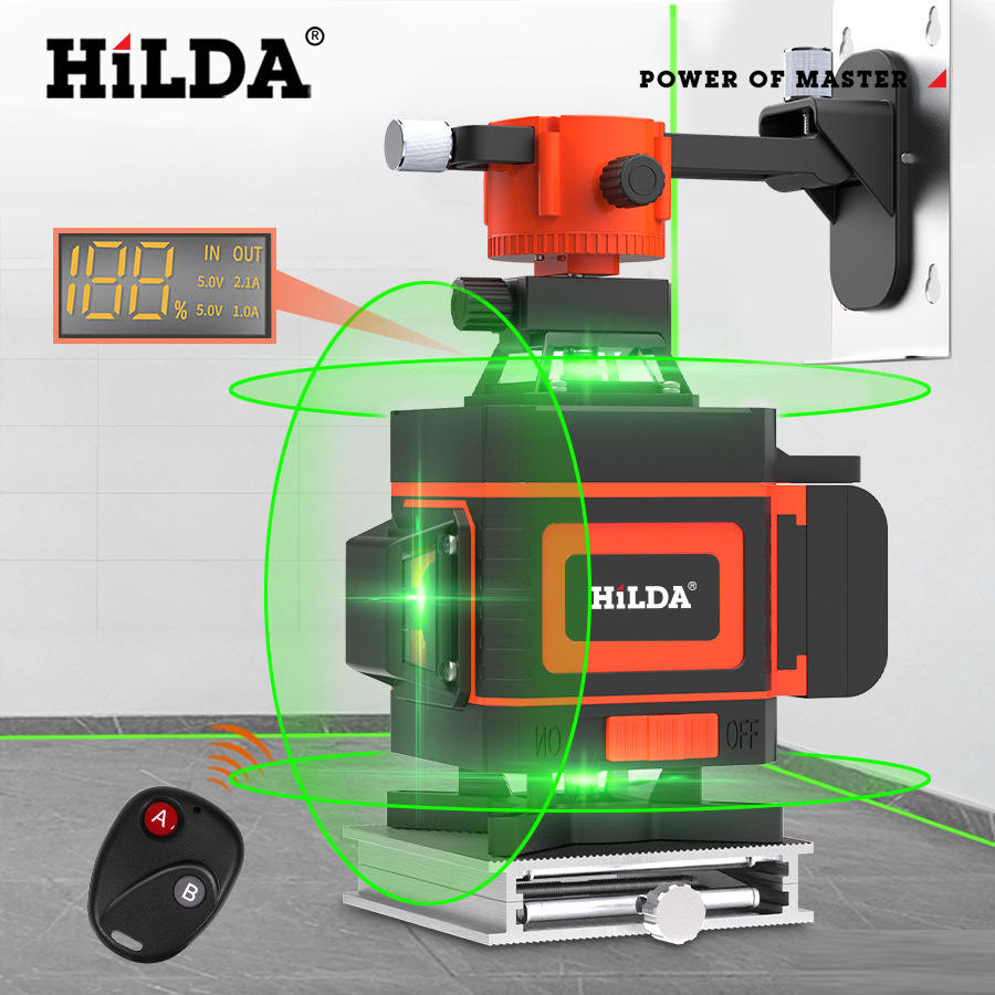 Niveau laser 3D à 12 lignes à faisceau vert, 16 lignes, 360 degrés, auto-nivelant, 4D, rotatif automatique, pour la construction, directement de l'usine