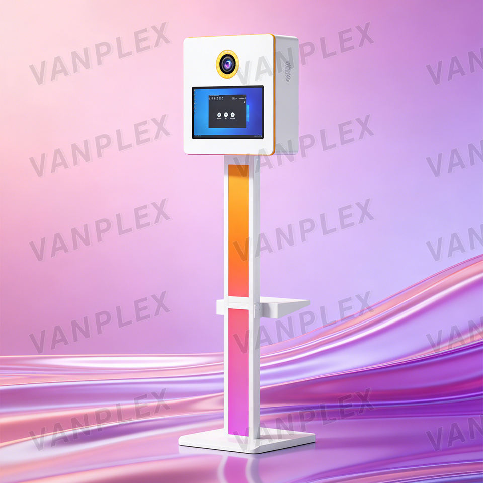 Kiosque photo DSLR à écran tactile 15,6 pouces, directement de l'usine, avec support lumineux RGB et imprimante pour mariages et événements