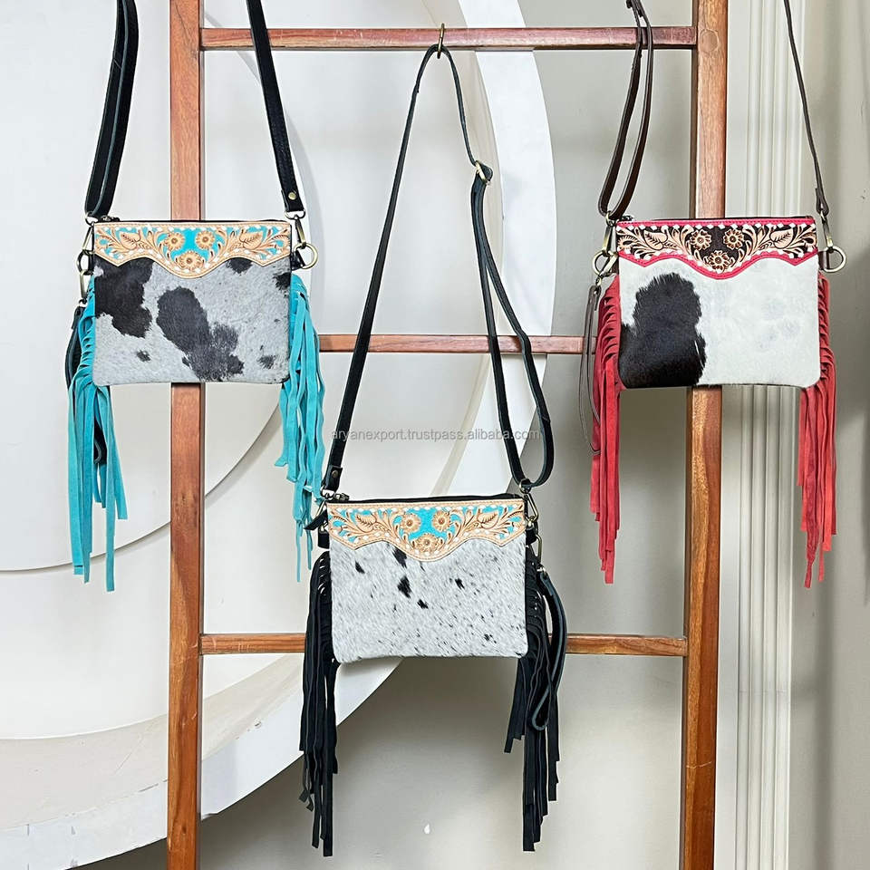 Nom du produit:Sac bandoulière en cuir de vachette à franges, travaillé à la main