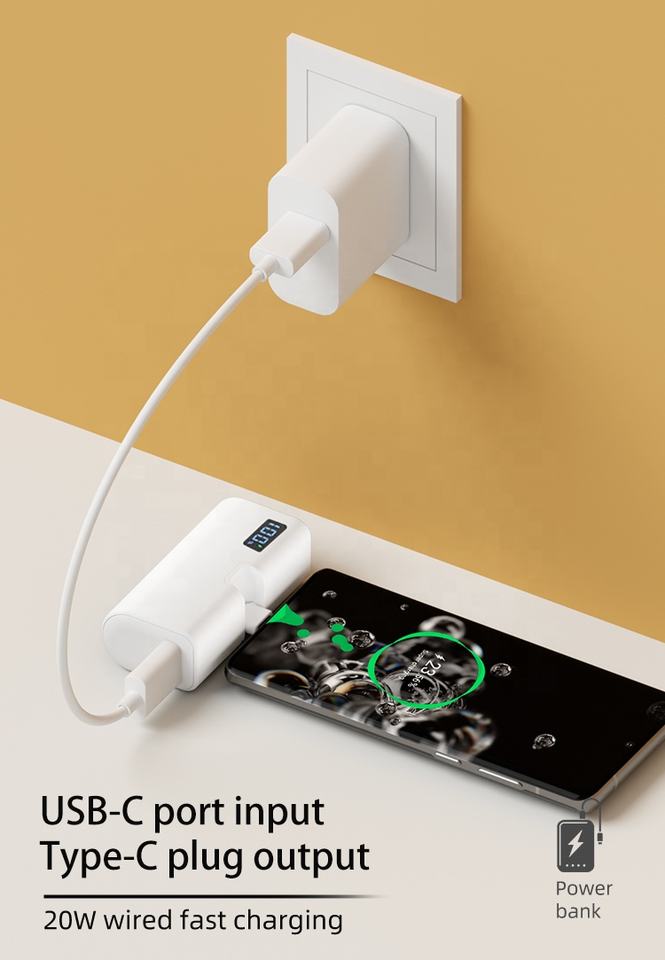 Alimentation portable directe d'usine 20W PD USB C pour téléphone portable, batterie à écran LCD, mini chargeur portable 5000mAh Power Bank