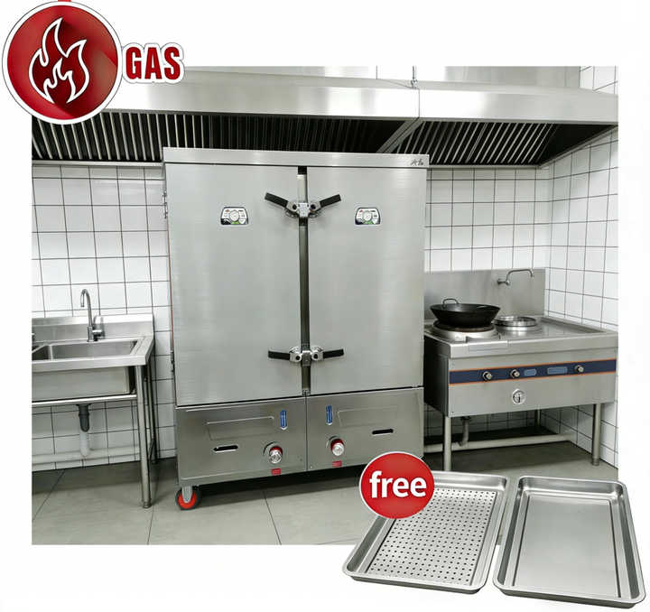 Armoire de cuisson vapeur industrielle à double porte, 24 plateaux, grande capacité, à gaz, pour riz, directement de l'usine, pour hôtels en Asie du Sud-Est