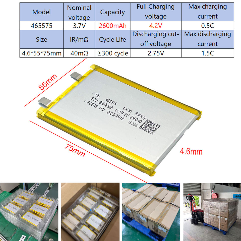 Batterie Li-Polymère 3.7V 2600mAh 465575 Direct Usine, Cellule LITHIUM Capacité Personnalisée 601530 pour Ordinateur Portable Samsung et Haut-Parleur Portable