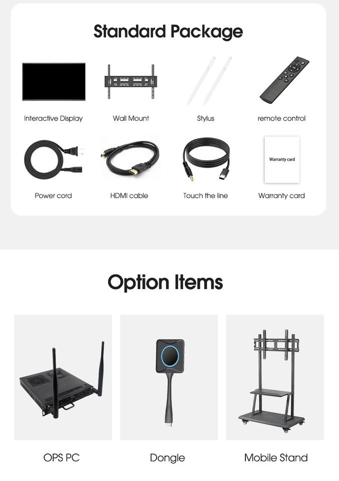 Tableau blanc interactif de 75 pouces direct d'usine avec stylos magnétiques intelligents à écran tactile LED à écran plat Promethean de 32 Go 4 Go