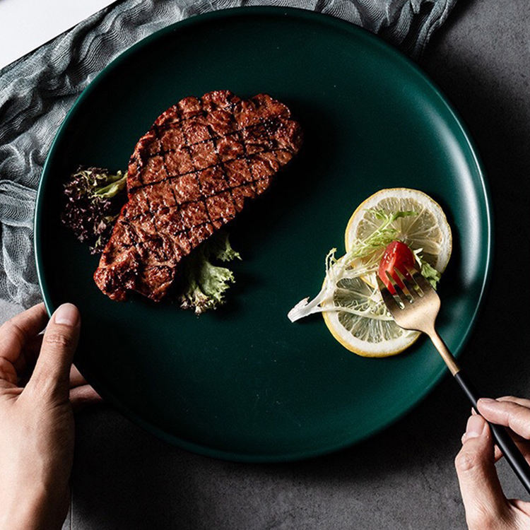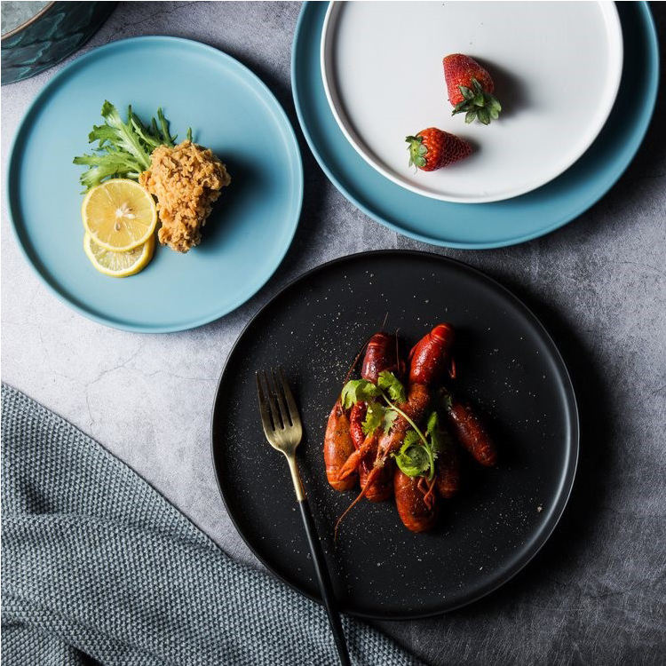 Plateau de service de pizza en céramique, direct d'usine, 8 pouces, 10 pouces, 12 pouces, italien moderne rond noir mat, assiette en céramique pour restaurant