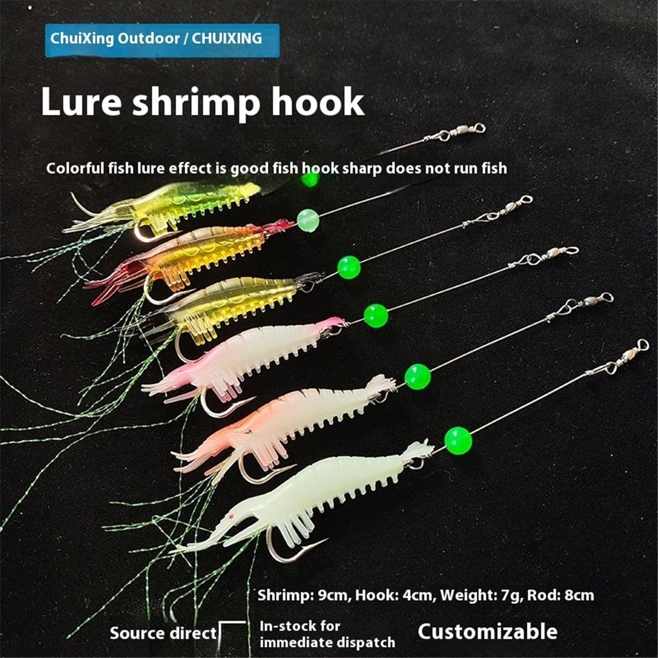 Appât souple pour crevettes de 9 cm et 6 g, fil d'acier, hameçon de 9 cm et 6 g pour la carpe, matériau ABS, technique de pêche au fond pour l'eau douce et la mer
