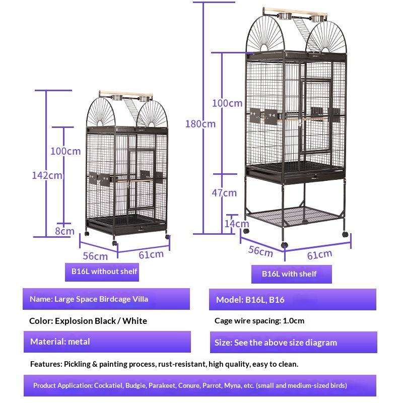 Cage à perroquets moderne et simple modèle B16 L-Large, en acier, avec étagère de rangement et plateau coulissant, directement de l'usine