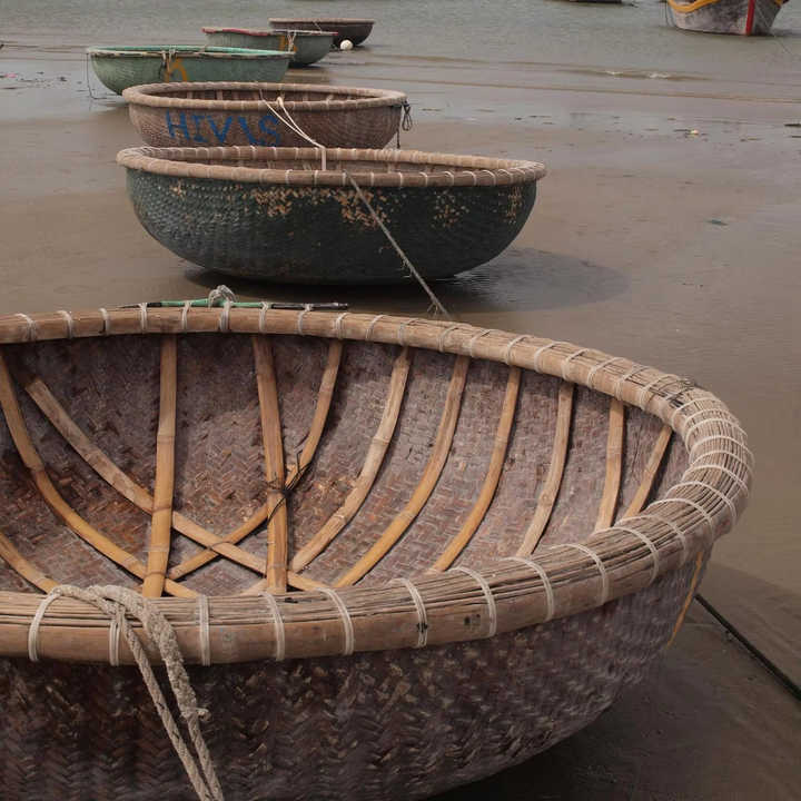 Coracle en bambou directement de l'usine, avec banc et pagaies inclus, coracle rond en bambou du Vietnam pour la décoration des complexes hôteliers de plage