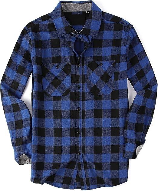 Chemise en flanelle à carreaux bleus et noirs, coton premium, manches longues, style décontracté, vêtement de travail, surchemise avec double poche, directement de l'usine