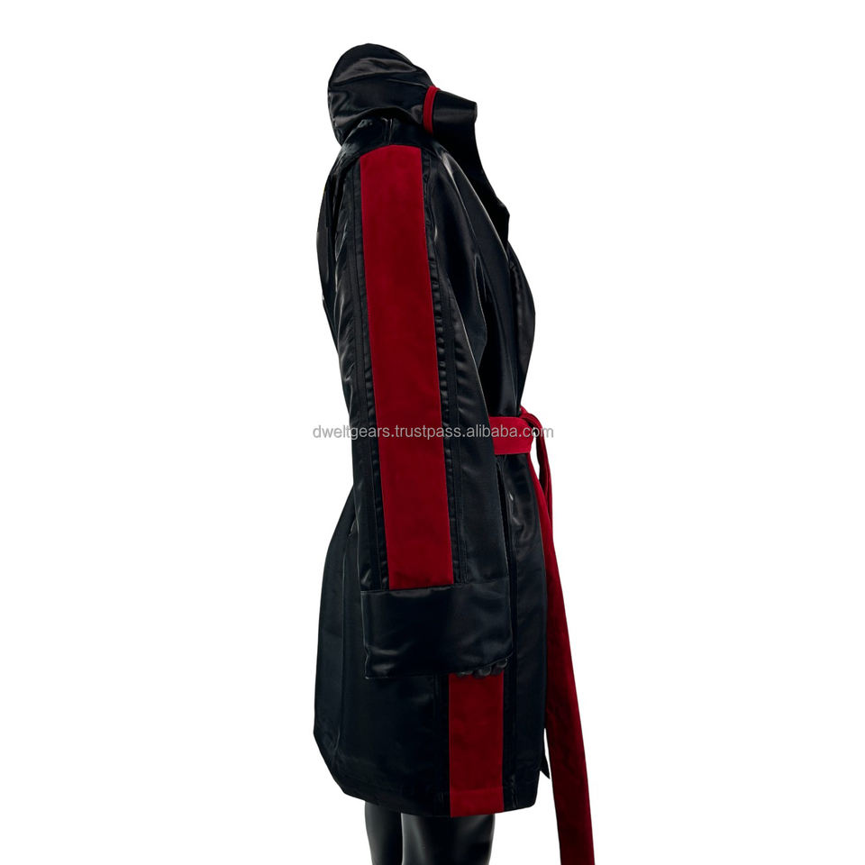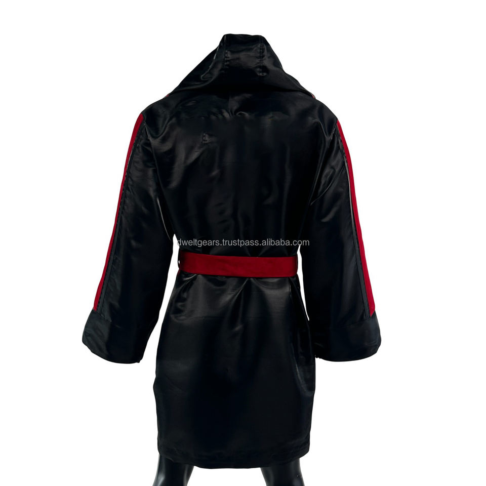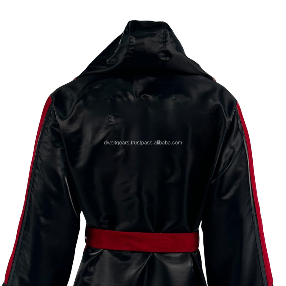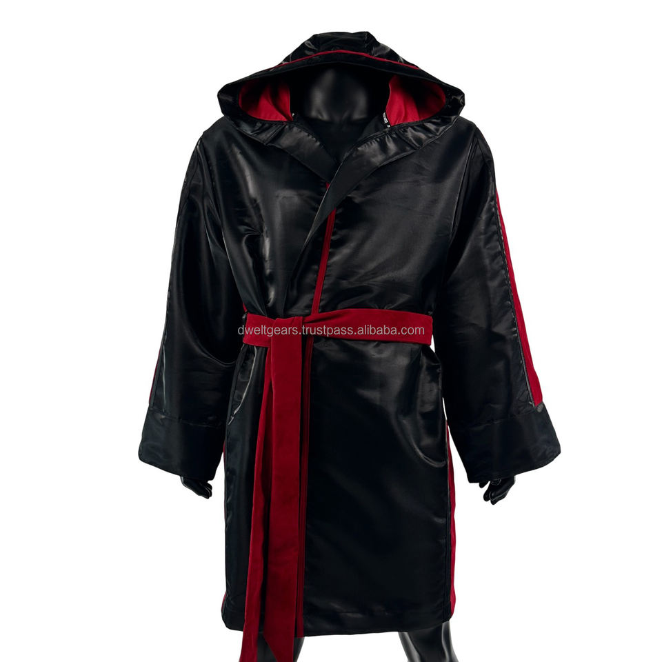 Fabricant direct d'habits de boxe, robe de cérémonie à capuche en satin personnalisée, fournisseur pour commandes en gros
