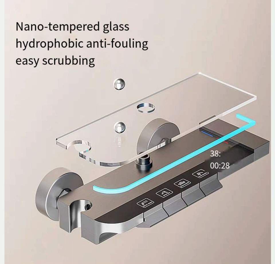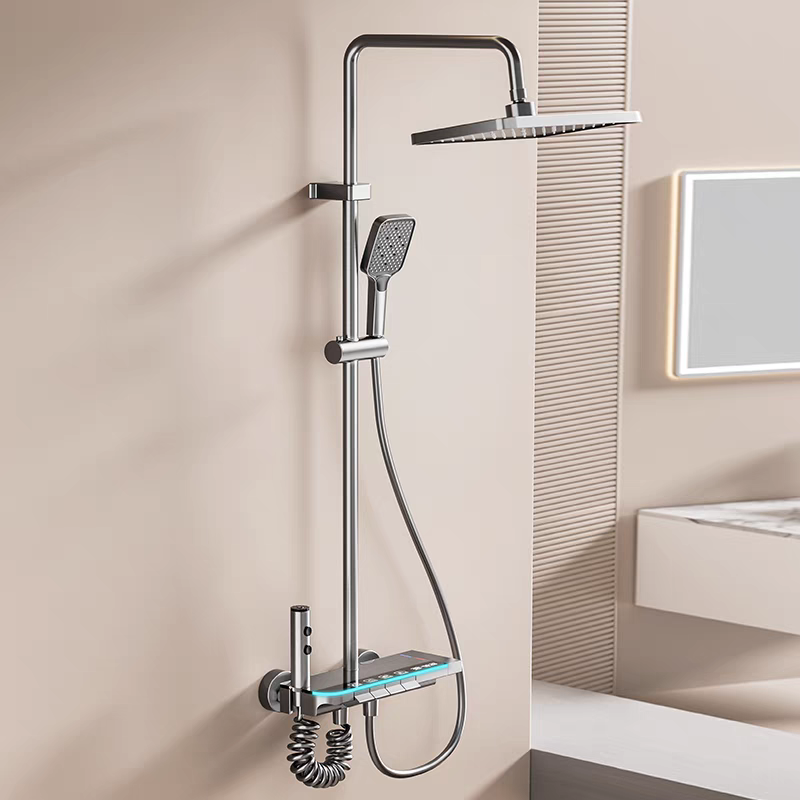 Usine directe en laiton salle de bain pluie douche robinet ensemble 4 fonctions affichage numérique Piano atmosphère lumière pistolet gris Massage