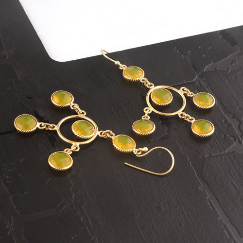 Boucles d'oreilles en laiton directes d'usine avec pierre de quartz jaune délicate plaqué or réglage de la lunette pendante pour les mariages