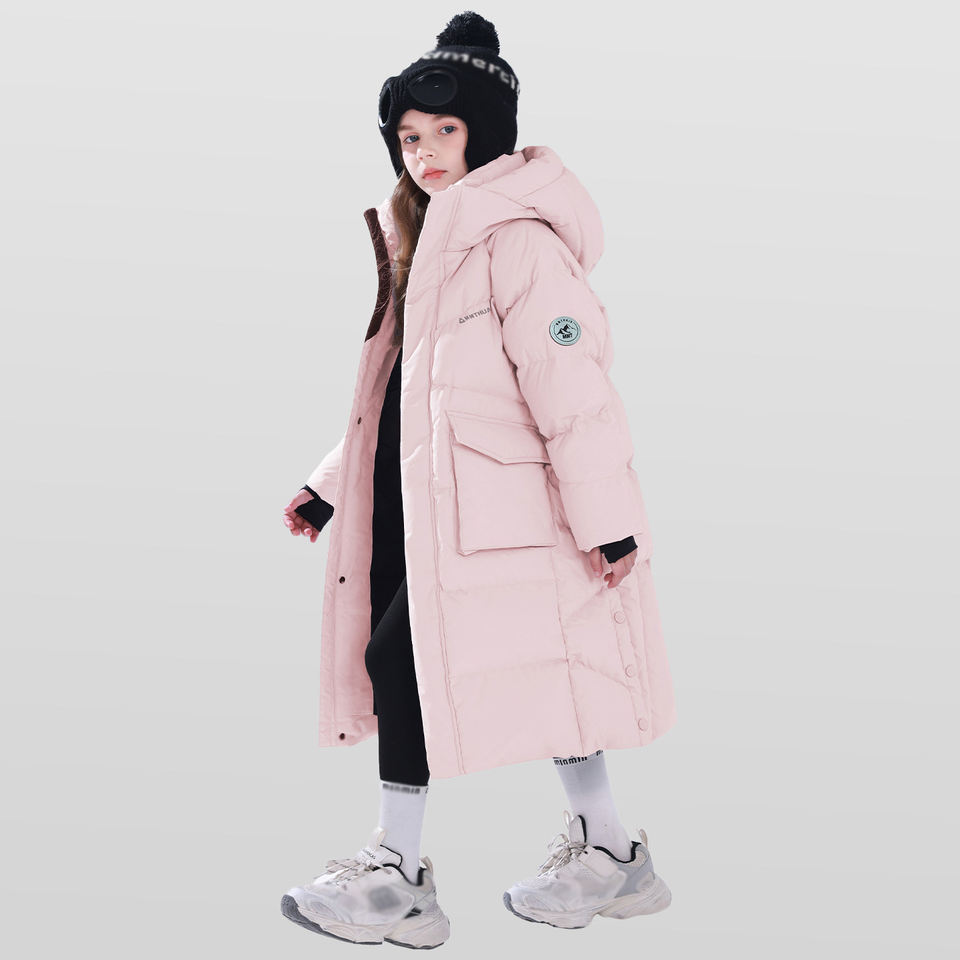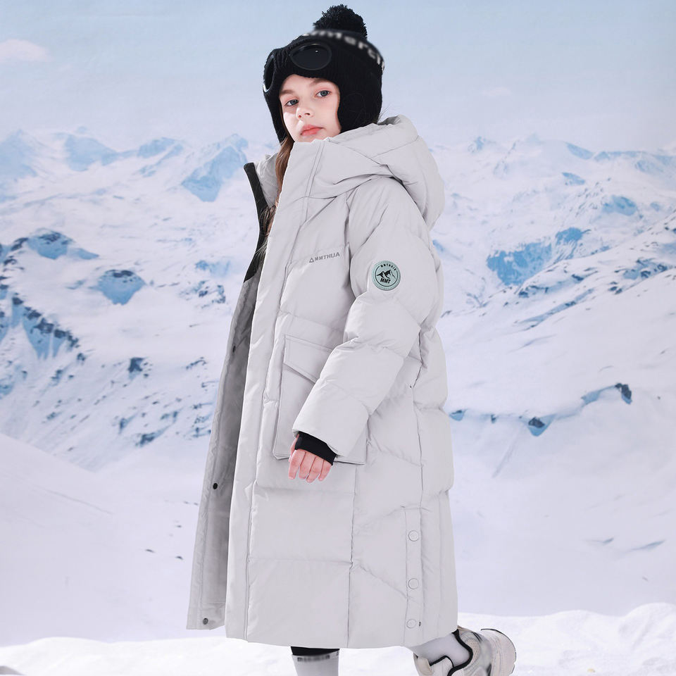 Vêtements pour enfants en direct d'usine, vêtements d'extérieur coupe-vent, long manteau d'hiver pour adolescents, garçons et filles, veste chaude pour enfants pour l'extérieur