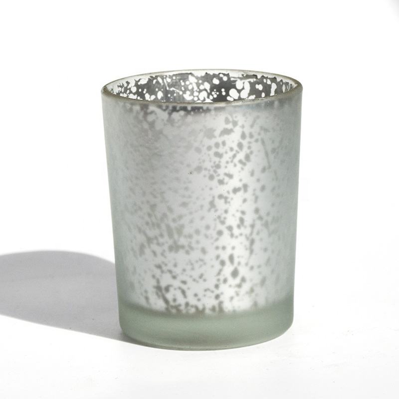 Usine directe noël bougie tasses argent gravé au laser verre bougeoirs cassé argent galvanoplastie parfum accessoires