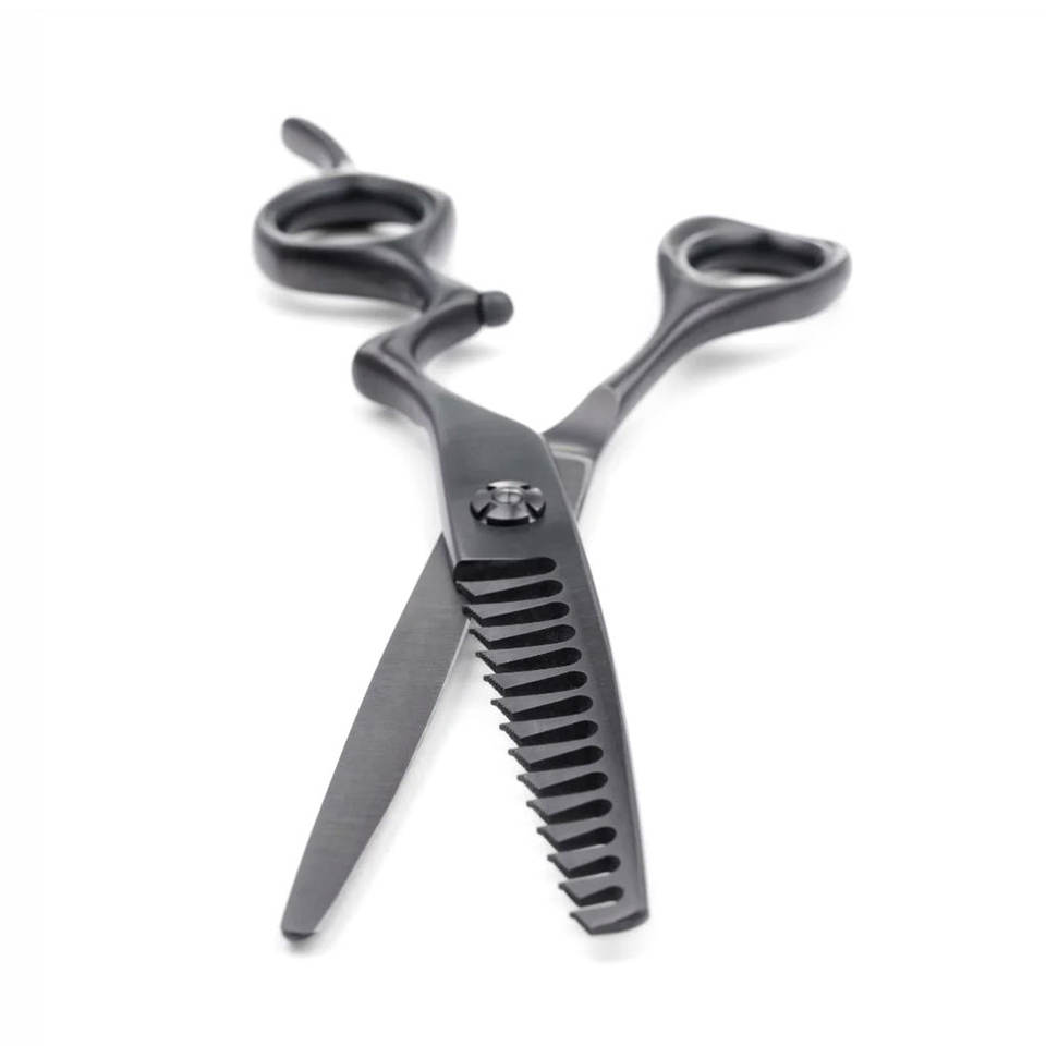 Ciseaux texturisants classiques ergonomiques noir mat, fabrication directe d'usine, en acier inoxydable de haute qualité, pour barbiers professionnels