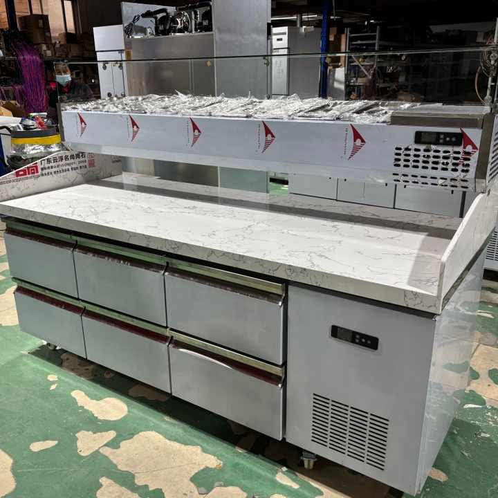 Comptoir réfrigéré pour pizza en marbre commercial, directement de l'usine / Comptoir réfrigéré pré-table