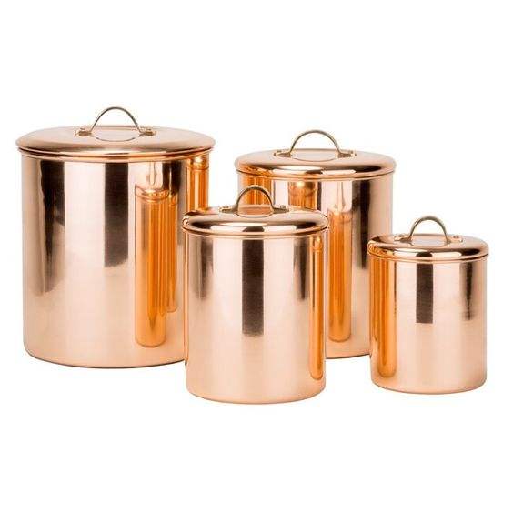 Conteneurs de stockage en cuivre direct d'usine Ensemble de 4 finis polis Aspect unique Ustensiles de cuisine Vaisselle polyvalente