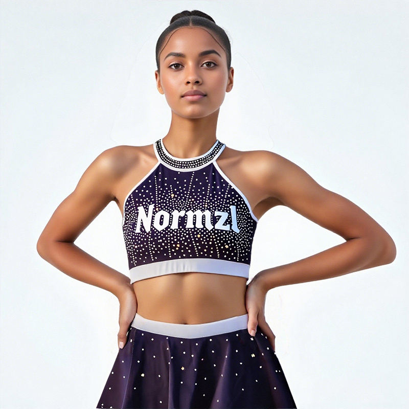 Ensemble d'uniformes de cheerleading sur mesure, directement de l'usine, pour femmes, rouge et noir, costume de danse, décoration en strass
