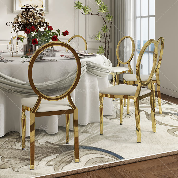 Nom du produit:Chaise de mariage dorée à dossier arrondi
