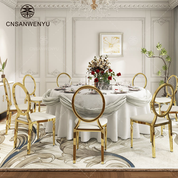 Chaises de banquet de luxe en acier inoxydable, design personnalisé, robustes, or et blanc, pour événements hôteliers, directement de l'usine