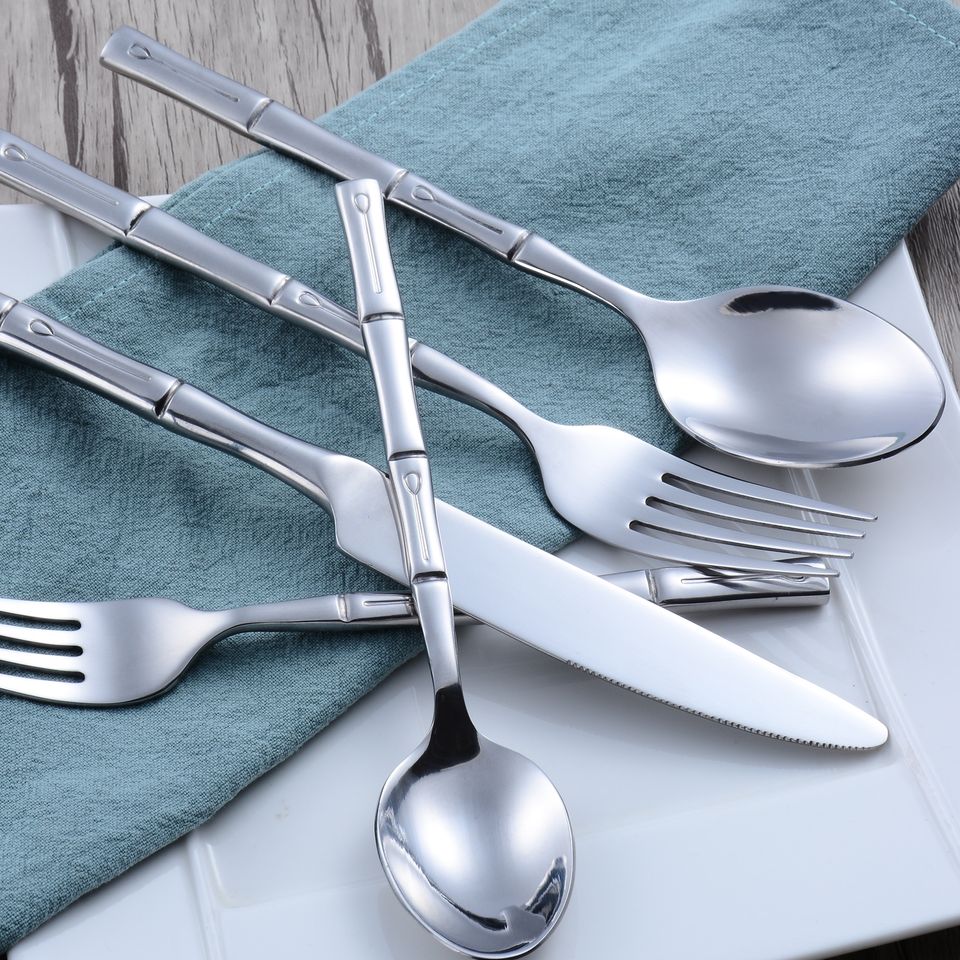 1 ensemble comprend:1 couteau de table, 1 cuillère de table, 1 fourchette de table, 1 cuillère à café, 1 fourchette à salade