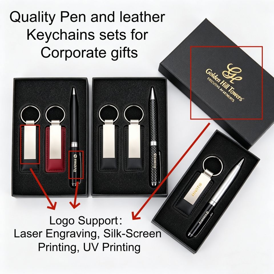 Ensemble stylo et porte-clés en cuir personnalisé, impression multi-couleurs, idées de cadeaux d'entreprise pour clients et cadres professionnels, directement de l'usine