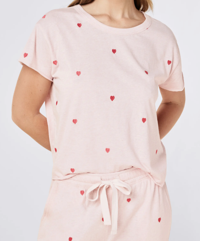 Pyjamas personnalisés en direct d'usine, imprimé cœur, vêtements de détente, ensemble de pyjamas pour femmes, vêtements de maison doux, nuisettes respirantes, vêtements de nuit pour femmes