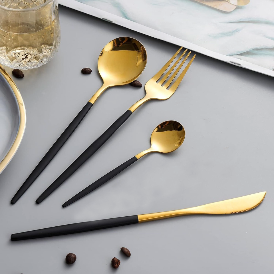 Usine directe personnalisé portugais chaud élégant vaisselle en acier inoxydable plaqué or couverts couteau cuillère fourchette ensemble couverts