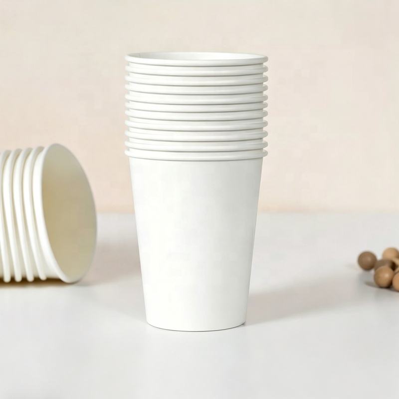 Gobelets en papier blancs personnalisés, imprimés sur mesure, à paroi simple, jetables, de qualité alimentaire, pour café, directement de l'usine