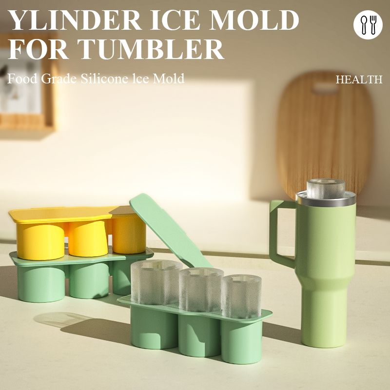 Moule de plateau de cube rond en silicone personnalisé direct d'usine avec couvercle pour faire des glaçons à 3 cylindres creux