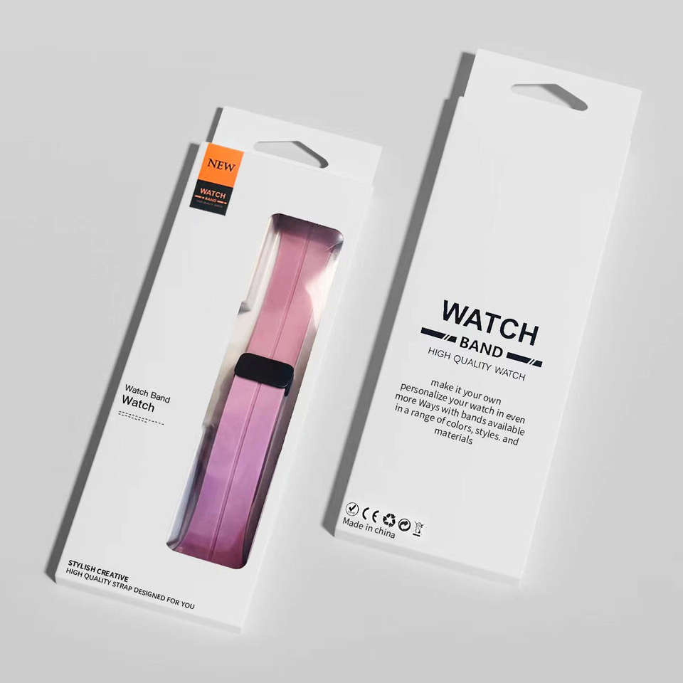 Boîte d'emballage en papier pour bracelet de montre en silicone personnalisé, directement de l'usine, pour bracelet en caoutchouc de montre intelligente
