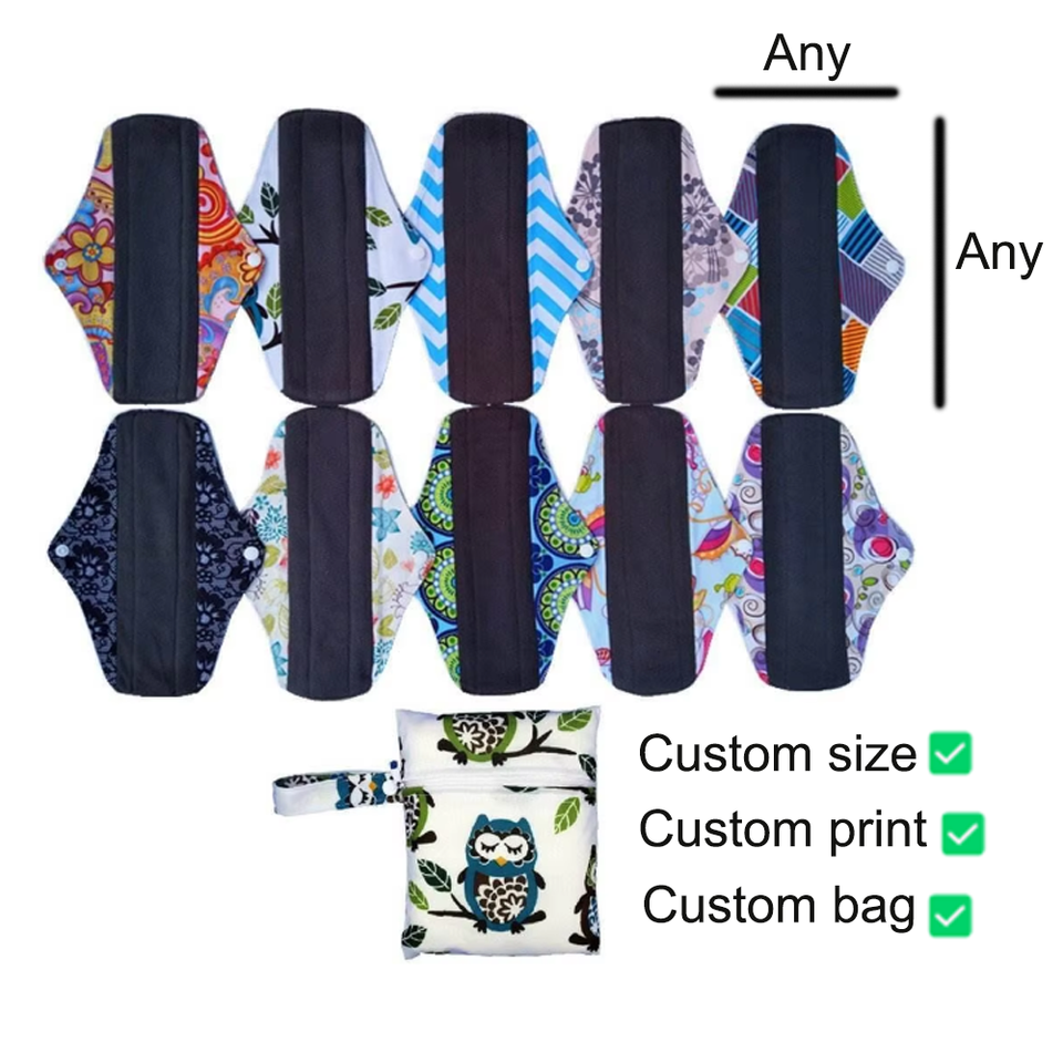 Coussinets pour incontinence urinaire au charbon de bambou respirant taille personnalisée directe de l'usine coussinets menstruels féminins en tissu réutilisables pour femmes