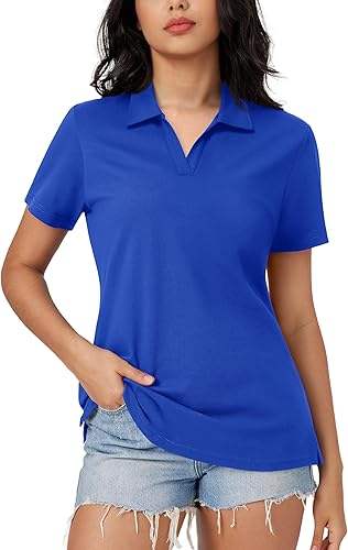 Polos pour femmes personnalisés directement en usine-T-shirts à col en V en coton pour le travail, vêtements d'été décontractés, confort au quotidien, durables