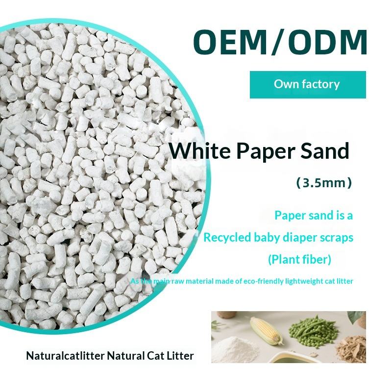 Litière pour chat en papier blanc, protection de l'environnement, personnalisable, directement de l'usine, légère, désodorisante, faible poussière, facile à agglomérer