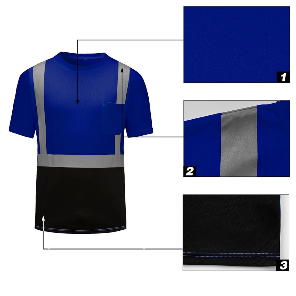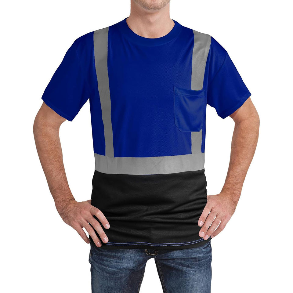 T-shirt de sécurité réfléchissant en polyester personnalisable avec logo, directement de l'usine, vêtements de sécurité faciles à porter, fabriqués par des fabricants de vêtements de sécurité.