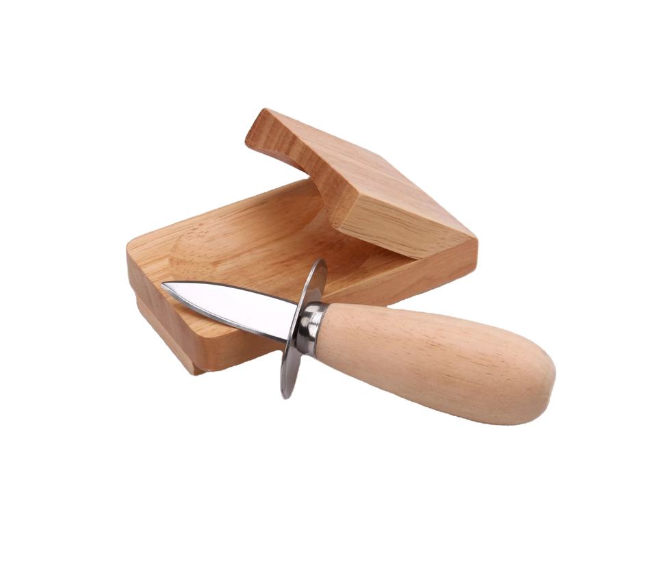 Plateau de décorticage d'huîtres en bois naturel et acier inoxydable, personnalisé, directement de l'usine, avec ensemble de couteaux à huîtres (conception fixe)