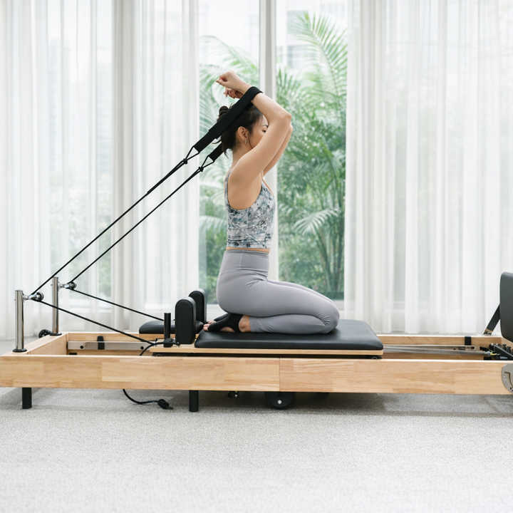 Équipement de Pilates personnalisé directement de l'usine, Reformer Pilates pliable en bois de chêne de haute qualité