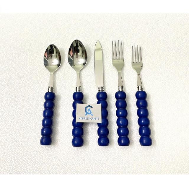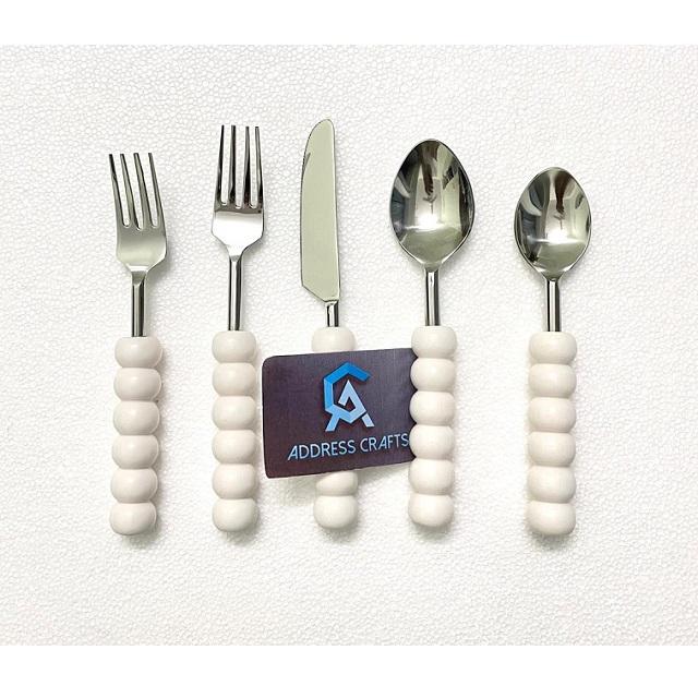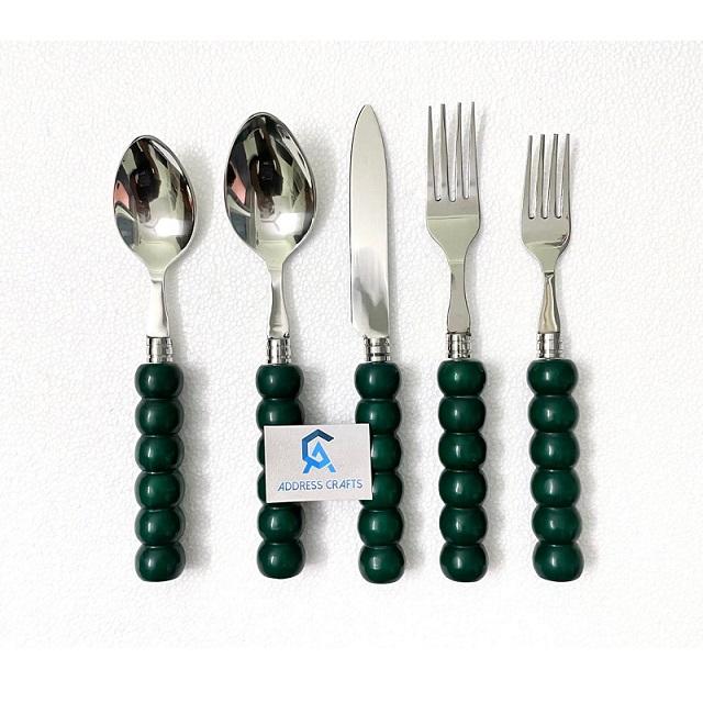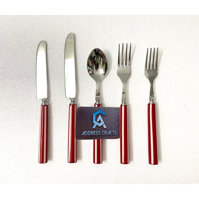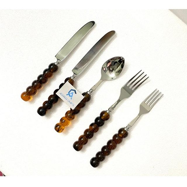 Couverts décoratifs en acier et en résine directs d'usine pour la décoration de la salle à manger à la maison meilleurs prix ensemble de couverts de cadeaux de pendaison de crémaillère poignée en résine