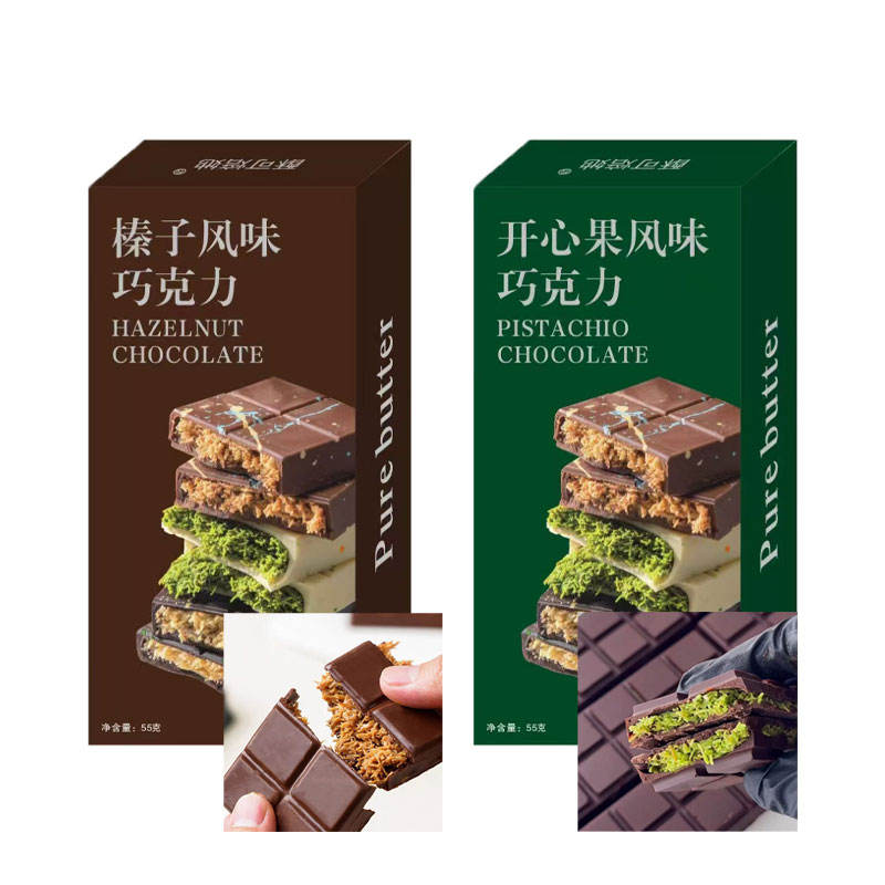 Chocolat de Dubaï Halal OEM de 55g pur fait à la main confiture de pistaches pâte de noisettes morceaux de chocolat en boîte avec livraison directe en usine