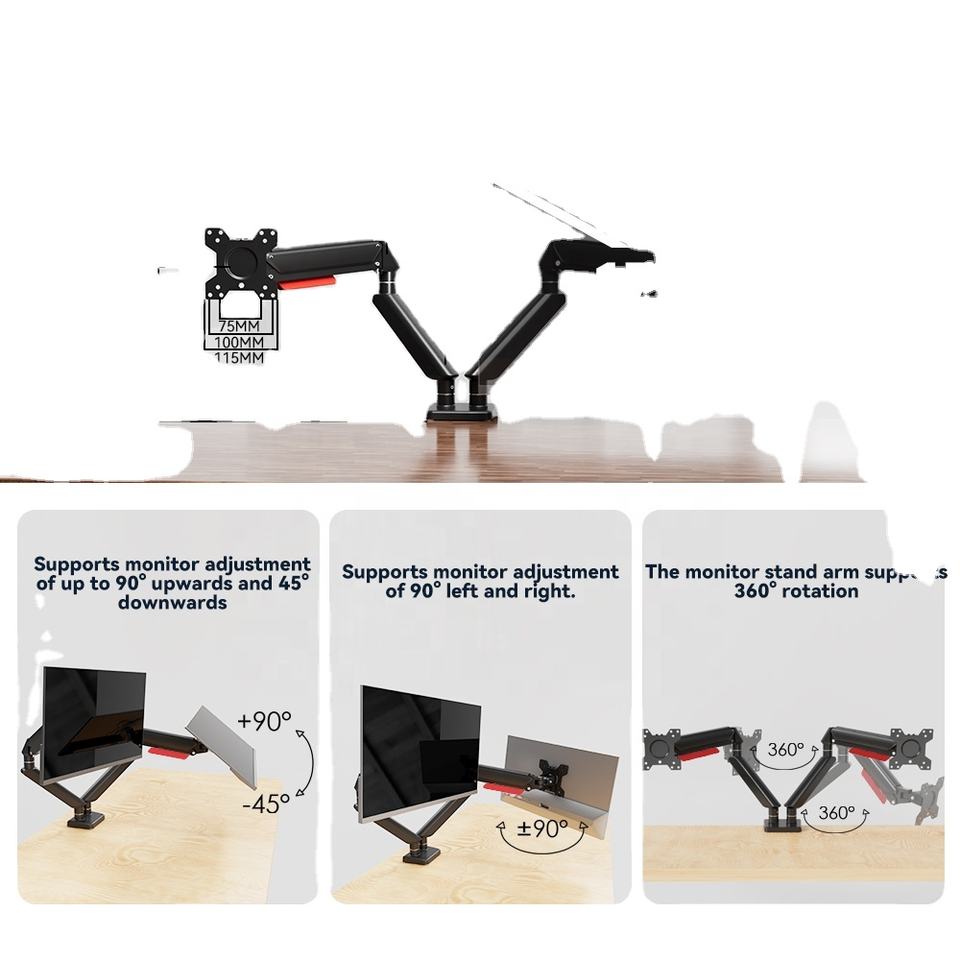Bras de support de double moniteur direct d'usine 17-32 pouces de jeu réglable à 90 degrés d'inclinaison 19.8lbs pour support de bureau Vesa 75X75 noir