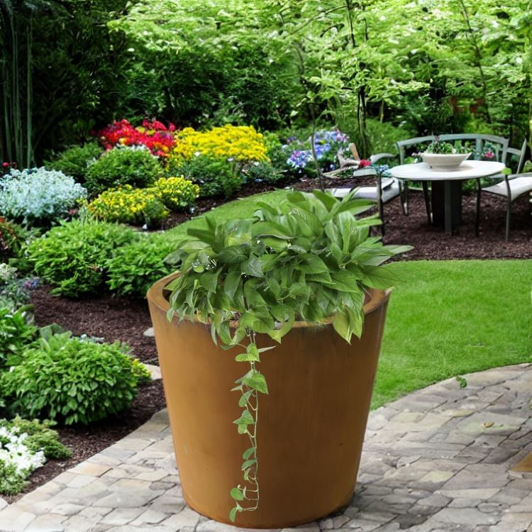 Jardinière cylindrique d'extérieur en acier Corten écologique, directement de l'usine, pour usage en jardin