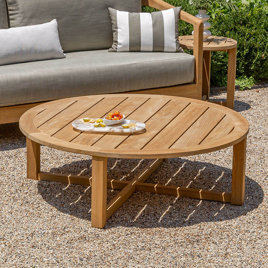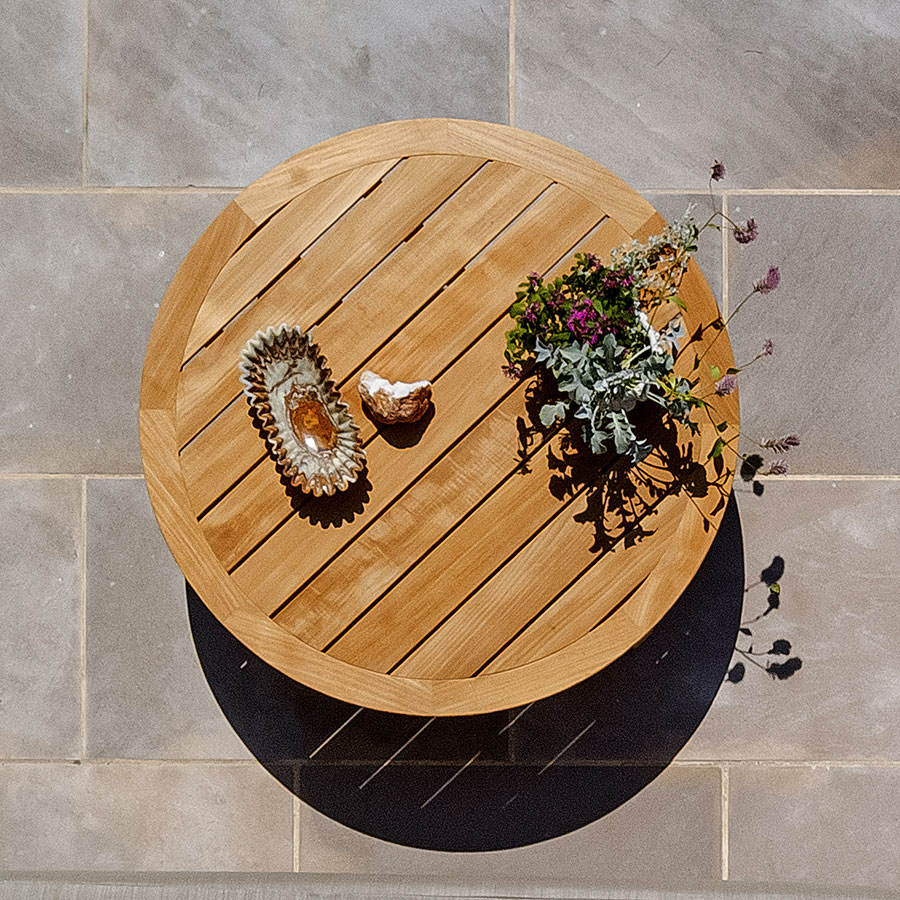 Table basse d'extérieur moderne en teck massif, fabriquée à la main, écologique et durable, directement de l'usine, pour hôtels et complexes hôteliers, meubles de salon