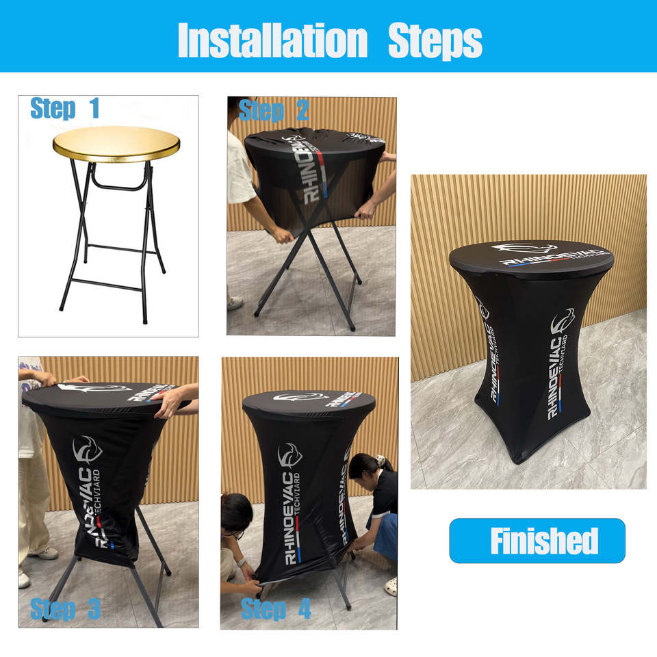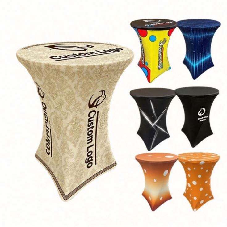 Factory Direct Elastic Spandex Stretch Tablecloth for Parties High Cocktail Table Cover Quality Advertising Covers