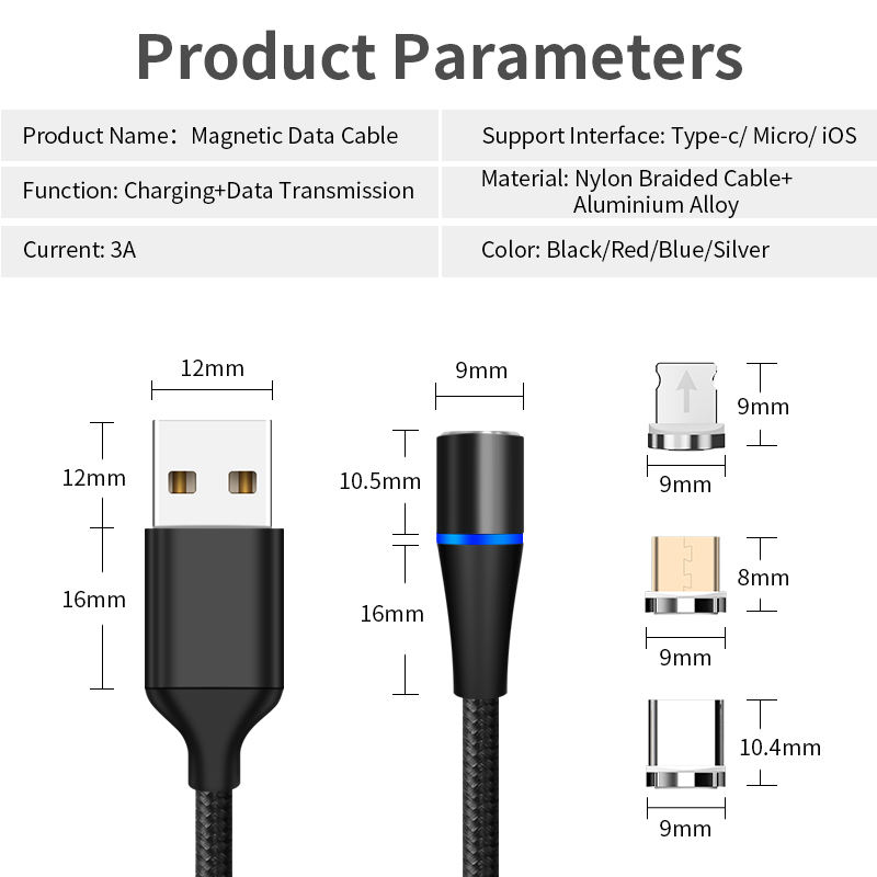 Nom du produit:USB, chargement micro USB, USB magnétique, câble USB 3 en 1 de type c